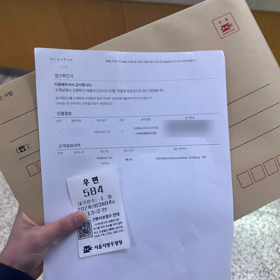 서류가 잘 도착했다면 CRA에서 메일로 보내준다고하니 진행상황 업데이트 하겠습니다!