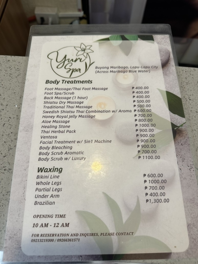 세부 막탄 근처 가성비 마사지 유리 스파 Yuri spa vs 쏠레일 스파 Soleil spa 비교 후기 예약 방법